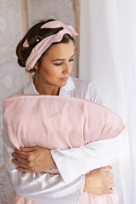 Orange peel silk pillowcase I envelope enclosure I standard size I zipper free I made in USA I blush