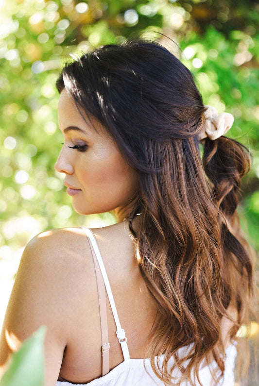 Vegan silk Scrunchies I orange peel silk I cruelty free l plastic free I soft | Made in USA | Nude